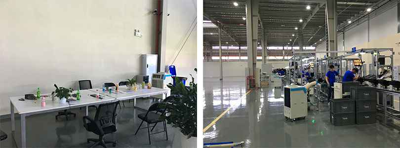 解决方案:使用SAC-35工业移动冷气机对作业区员工使用双管针对降温,对休息区使用出风窗款大面积降温