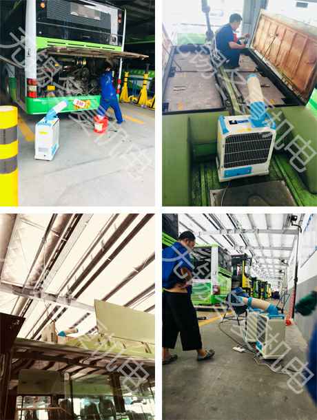 解决方案:使用公司SAC-18小型移动冷气机,放置于车厢顶部或者内部,针对作业员工进行定点降温,降低夏季中暑风险。