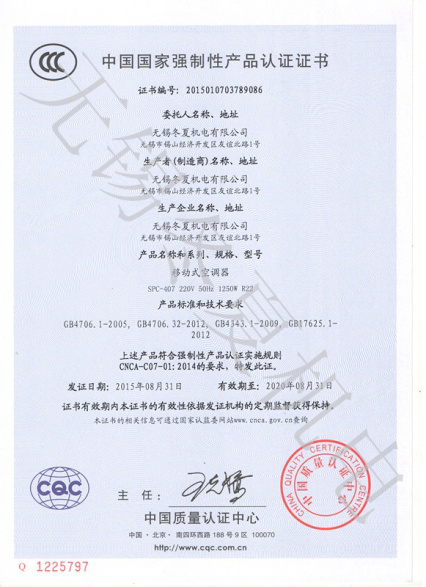 近日,南京柯辉生态环境监测有限公司的移动工业冷气机、暖风机产品7个型号取得了中国质量认证中心颁发的3C强制认证证书。