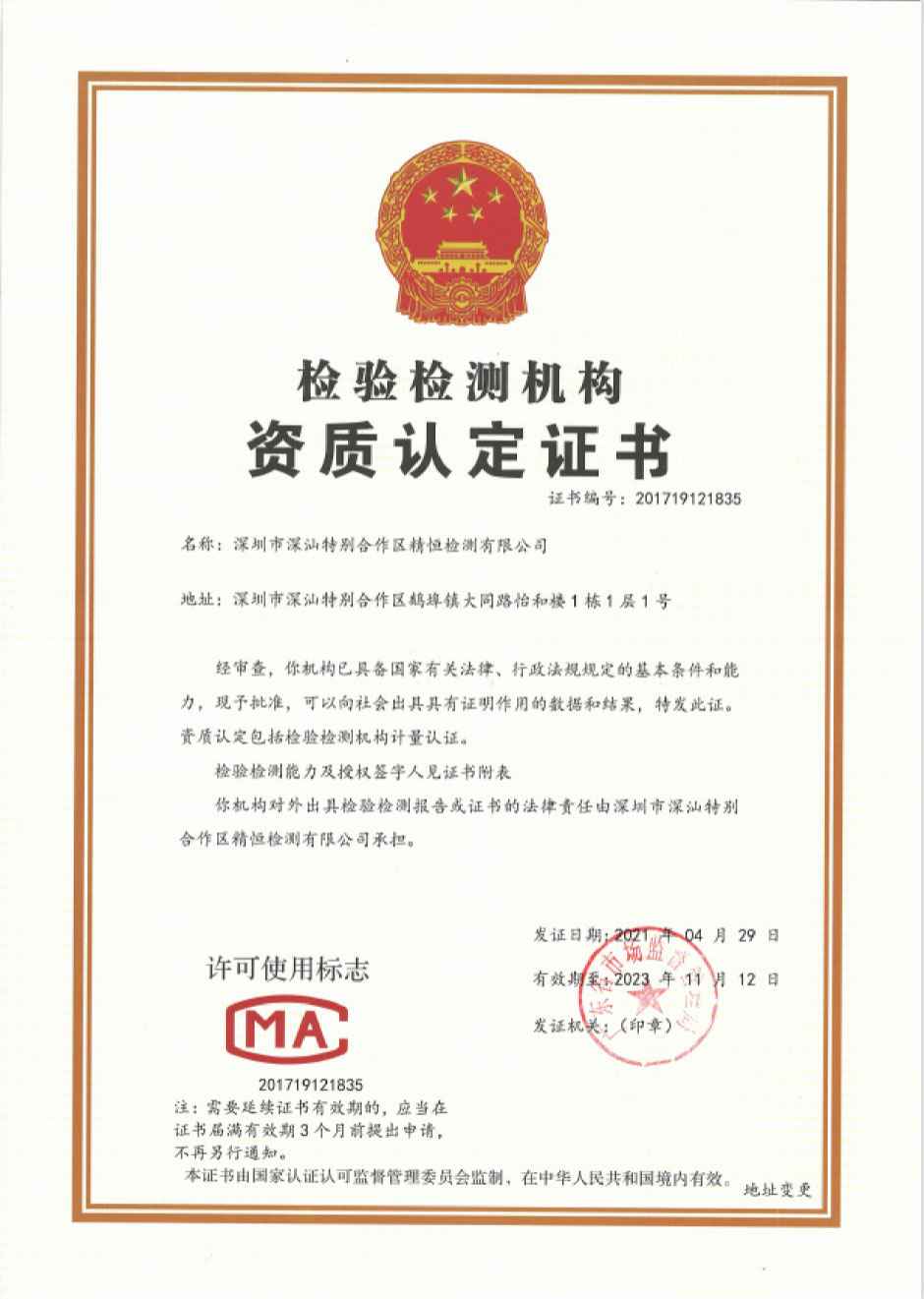 深圳市深汕特别合作区华体会体育(中国)HTH·官方网站前身为深汕特别合作区华体会体育(中国)HTH·官方网站,由华体会体育(中国)HTH·官方网站控股投资,于二零一四年十二月在汕尾市住房和城乡建设局备案(证书号:JCJG-2015003),从事检验检测工作,二零一五年深汕特别合作区招商引资,为了更好的服务于深汕特别合作区,方便于建设管理者严把建设工程质量关。根据国家相关法律、法规要求,当地也必须有国家认可的检验检测机构,作为一个深圳市检测经验丰富的检测机构,经汕尾市政府、深汕特别合作区管理委员会等领导审批后,作为第二批进驻深汕特别合作区企业。由于建设发展的需要,本公司于二零二一年十月二十七日更名为深圳市深汕特别合作区华体会体育(中国)HTH·官方网站。